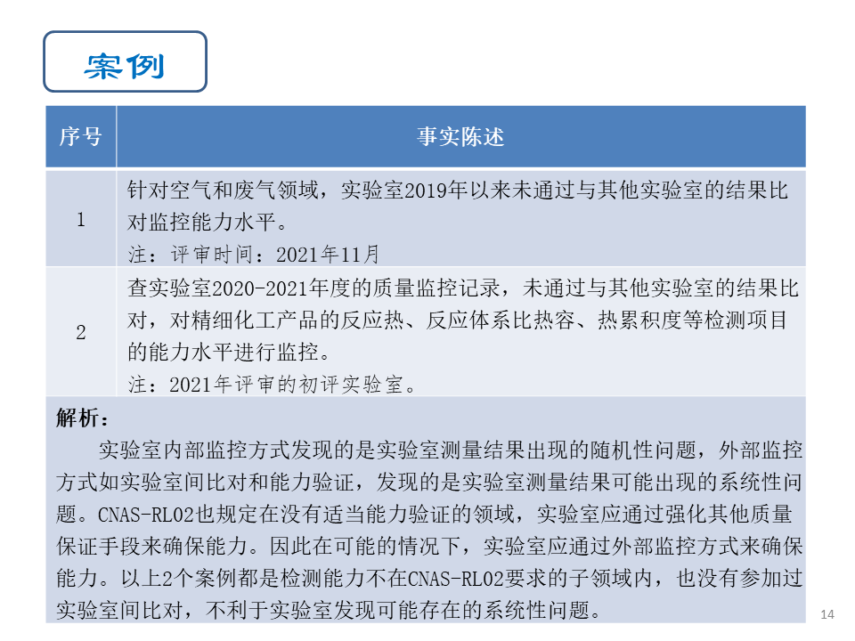 近日,中国合格评定国家认可中心(CNAS)结合行业关注热点问题,推出认可评审案例系列。本期将为大家带来CNAS-CL01《检测和校准实验室能力认可准则》中确保结果有效性相关典型案例,供行业同仁参考。